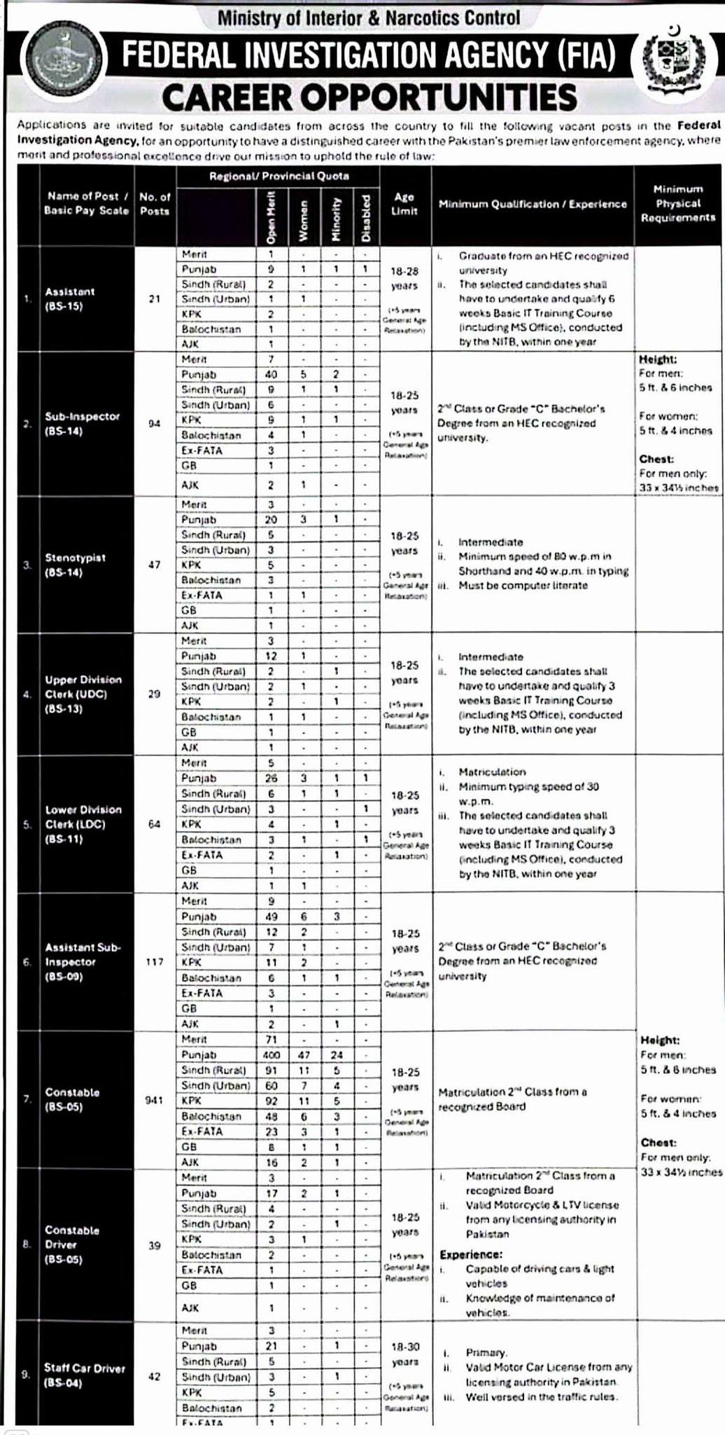 FIA Jobs 2026 in Pakistan – Apply Online for Assistant, Sub Inspector, UDC, LDC & Constable