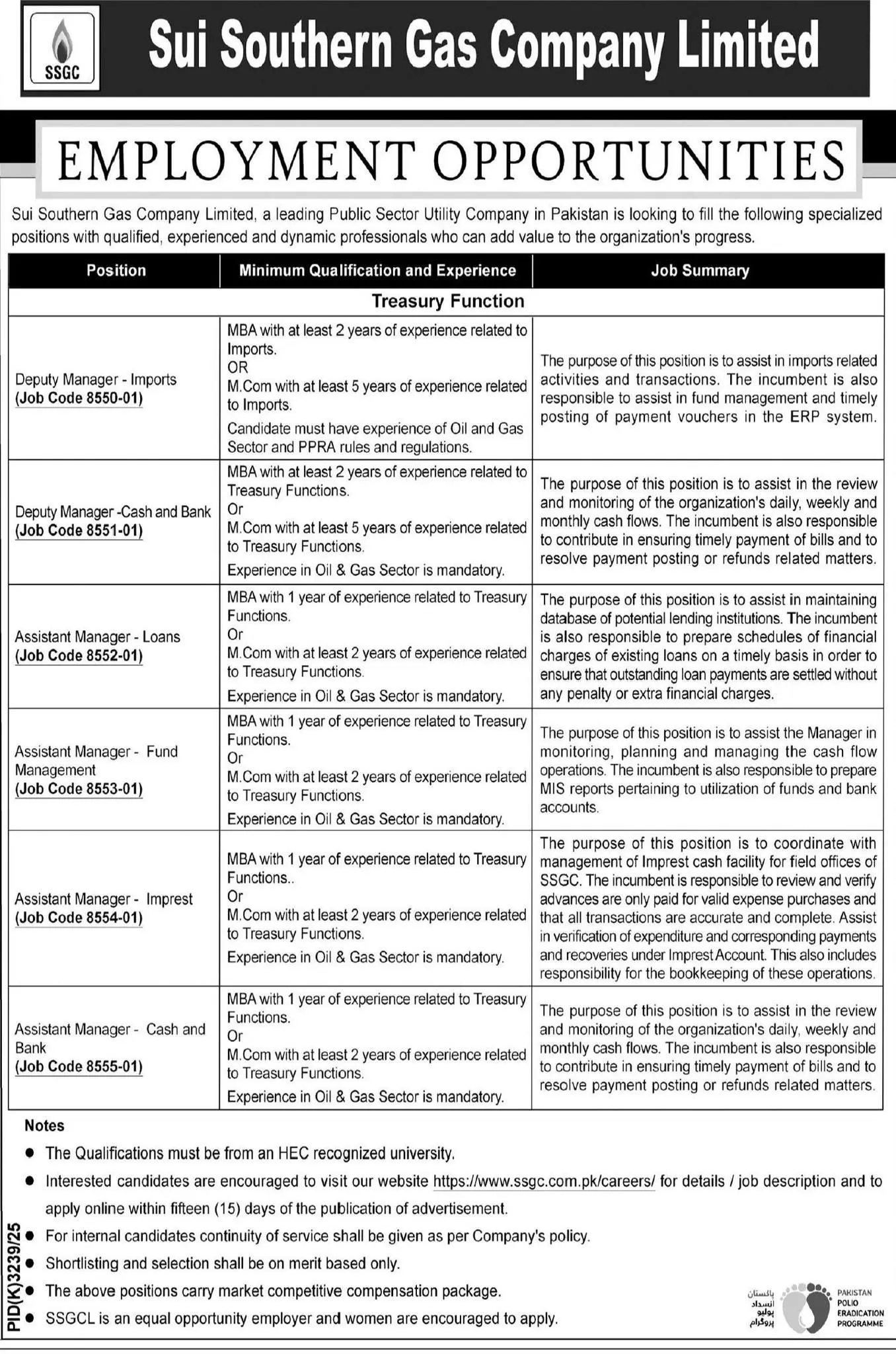 Sui Southern Gas Company Limited (SSGC), one of Pakistan’s major public sector utility organizations, has announced fresh career openings for skilled and experienced professionals. These positions fall under the treasury department and are ideal for candidates seeking growth in a fast-paced and professional workplace.
